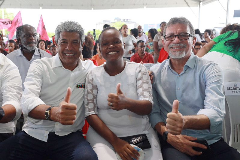 A primeira ordem de serviço do Plano de Aceleração do Crescimento (PAC) na Bahia foi assinada pelo governador Jerônimo Rodrigues, durante evento realizado no Largo de Roma, em Salvador, nesta segunda-feira (5). No ato, o governador autorizou as obras de micro e macrodrenagem nas Bacias da Baixa do Bonfim, Boa Viagem e Massaranduba. O evento contou com a participação de secretários de Estado e outras autoridades, dentre elas, a secretária de Desenvolvimento Urbano, Jusmari Oliveira, e o presidente da Companhia de Desenvolvimento Urbano do Estado da Bahia (Conder), José Trindade.