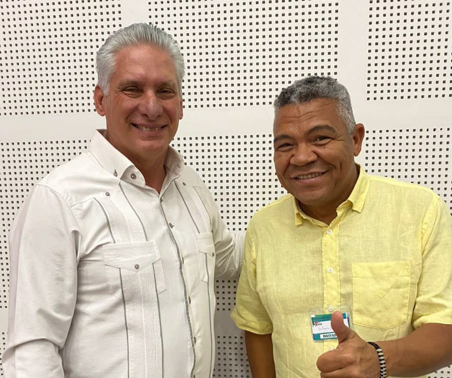 Em Cuba, Valmir Assunção se encontra com presidente Miguel Díaz-Canel em seminário contra o bloqueio econômico