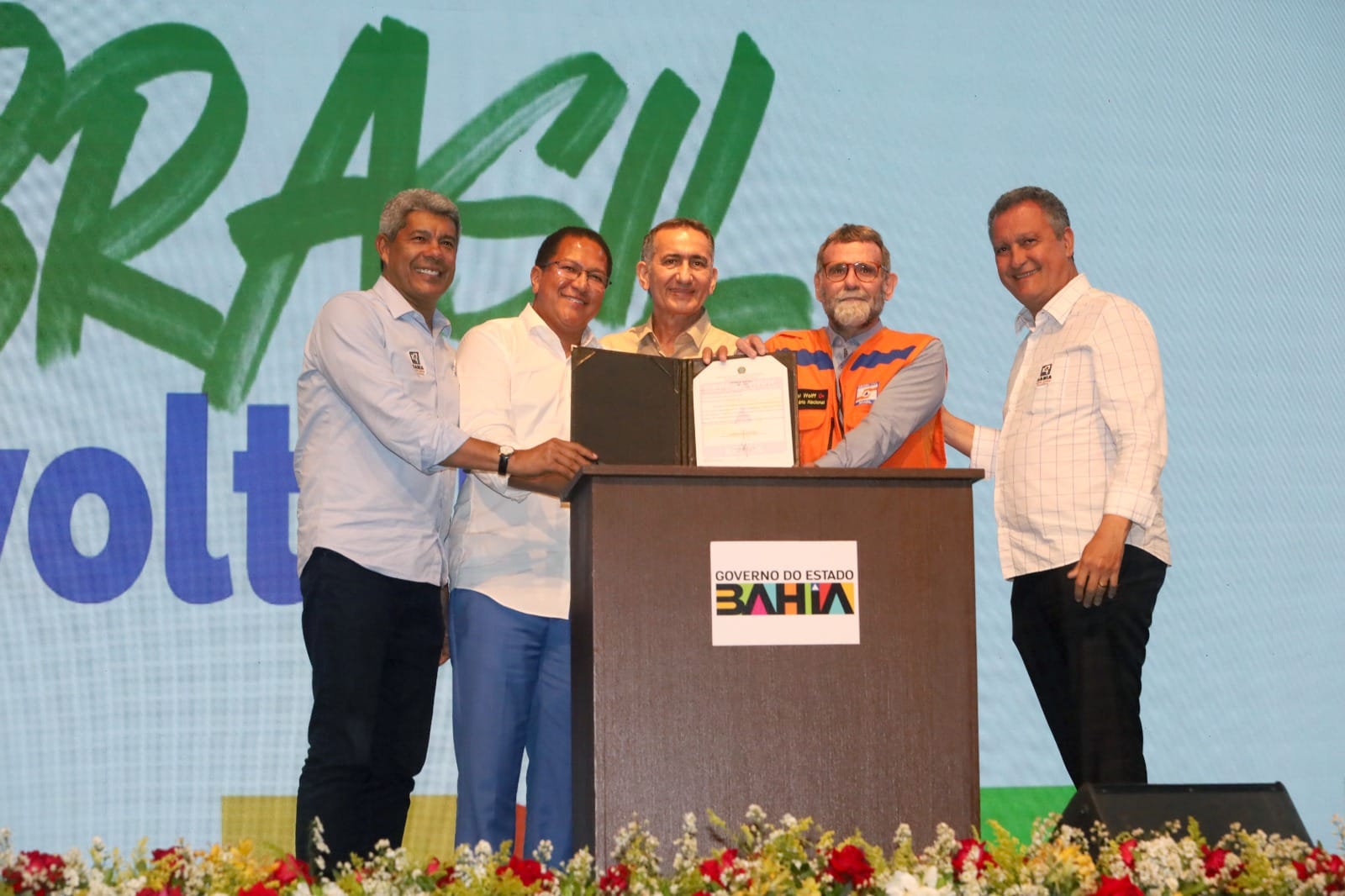 Foi assinada nesta segunda-feira (24), pelo governador Jerônimo Rodrigues e o ministro da integração, Waldez Góes, ordem de serviço para reconstrução de moradias em Itabuna, no sul do estado. A solenidade também contou com a presença do ministro da Casa Civil, Rui Costa. Este mês, o Governo Federal autorizou o repasse de R$ 83 milhões ao município de Itabuna, para a construção de 696 moradias para famílias que perderam suas casas, atingidas por chuvas intensas. Os recursos também serão usados na construção de dois parques lineares na cidade.