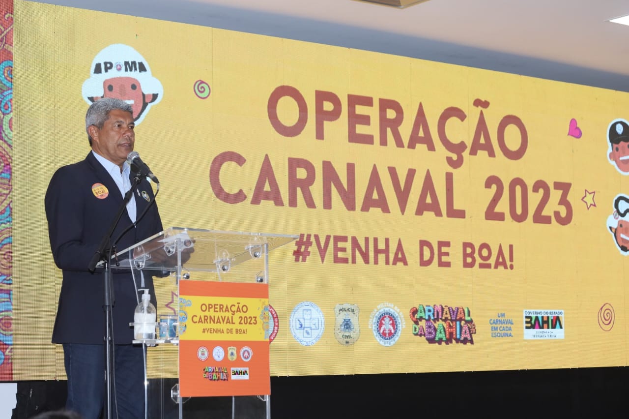 O governador Jerônimo Rodrigues participou, na manhã desta segunda-feira (13), da apresentação do planejamento da Operação Carnaval 2023 realizada pela Secretaria de Segurança Pública (SSP), no Batalhão Especializado de Policiamento (Bepe), no bairro de Pituaçu, em Salvador. O evento contou também com a presença do vice-governador, Geraldo Júnior, do titular da SSP, Marcelo Werner, entre outras autoridades. O conjunto de ações para o primeiro Carnaval depois da pandemia de covid-19 na capital e interior do estado vai reunir 30 mil profissionais das polícias Militar (PM) e Civil (PC), Departamento de Polícia Técnica (DPT) e Corpo de Bombeiros (CBMBA), num investimento de mais de R$ 60, 8 milhões para garantir a segurança de baianos e turistas.