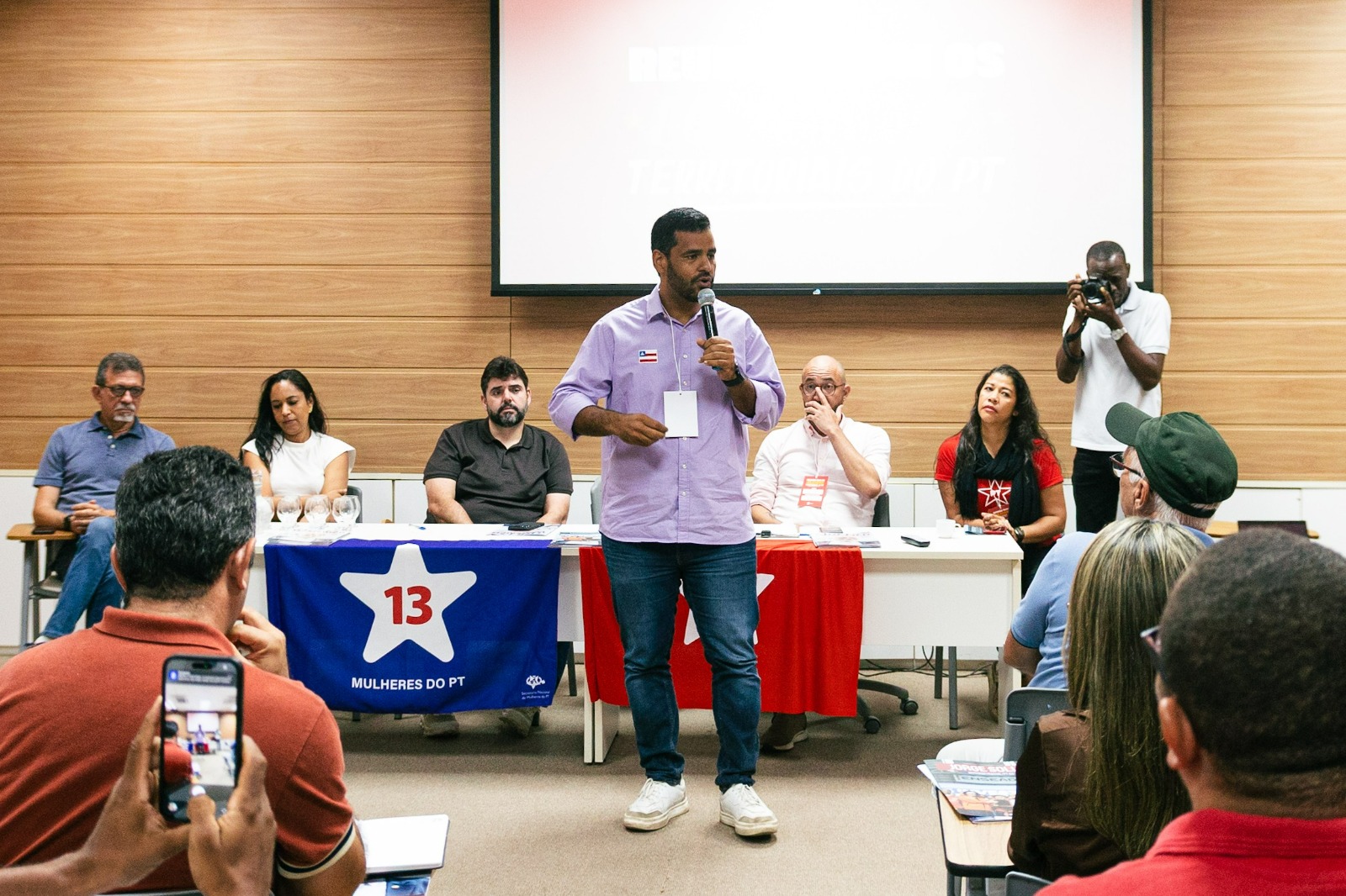 O PT Bahia reuniu dirigentes petistas dos 27 territórios de identidade da Bahia para dar a partida nas estratégias da legenda para as eleições de 2026. O primeiro encontro com os representantes de todos os colegiados territoriais aconteceu no sábado (14) e contou com debates fundamentais conduzidos por lideranças, como o Secretário de Relações Institucionais do estado, Adolpho Loyola; o Secretário da Casa Civil e deputado federal, Afonso Florence; e o Secretário de Cultura da Bahia, Bruno Monteiro.