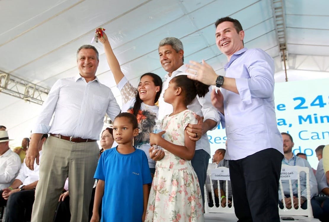 O governador Jerônimo Rodrigues e os ministros da Casa Civil, Rui Costa, e das Cidades, Jader Filho, entregaram, nesta sexta-feira (28), mais um conjunto habitacional do programa Minha Casa, Minha Vida (MCMV), em Feira de Santana. O Residencial Campo Belo – Etapa Habitar do Sertão conta com 248 unidades habitacionais, contratadas ainda no governo da ex-presidente Dilma Rousseff, mas estava fechado e sem manutenção, pois os governos seguintes interromperam o programa, retomado este ano na gestão do presidente Lula. Com a continuidade do MCMV, os imóveis foram revitalizados pela Companhia de Desenvolvimento do Estado da Bahia (Conder), empresa vinculada à Secretaria de Desenvolvimento Urbano do Estado (Sedur). O investimento total foi de R$ 16,2 milhões, sendo R$ 1,3 do estado.
