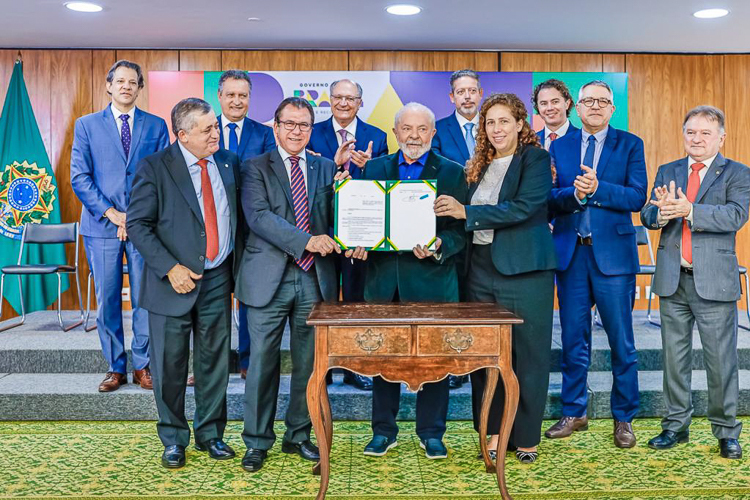 O processo de reconstrução nacional avança a passos largos no país. Duas das mais importantes promessas de campanha do presidente Lula foram cumpridas nesta segunda-feira (28): a valorização do salário mínimo acima da inflação e a atualização da tabela do Imposto de Renda. O presidente assinou a MP 1.172/2023 que aumenta o piso para R$ 1.320 e garante a isenção do IR para quem ganha até R$ 2.640. Agora lei, a medida assegura valorização anual do salário mínimo, que ficou sete anos sem aumento real. Após a cerimônia de assinatura, que contou com ministros e autoridades dos Três Poderes, o presidente Lula festejou a mais nova conquista do povo trabalhador.